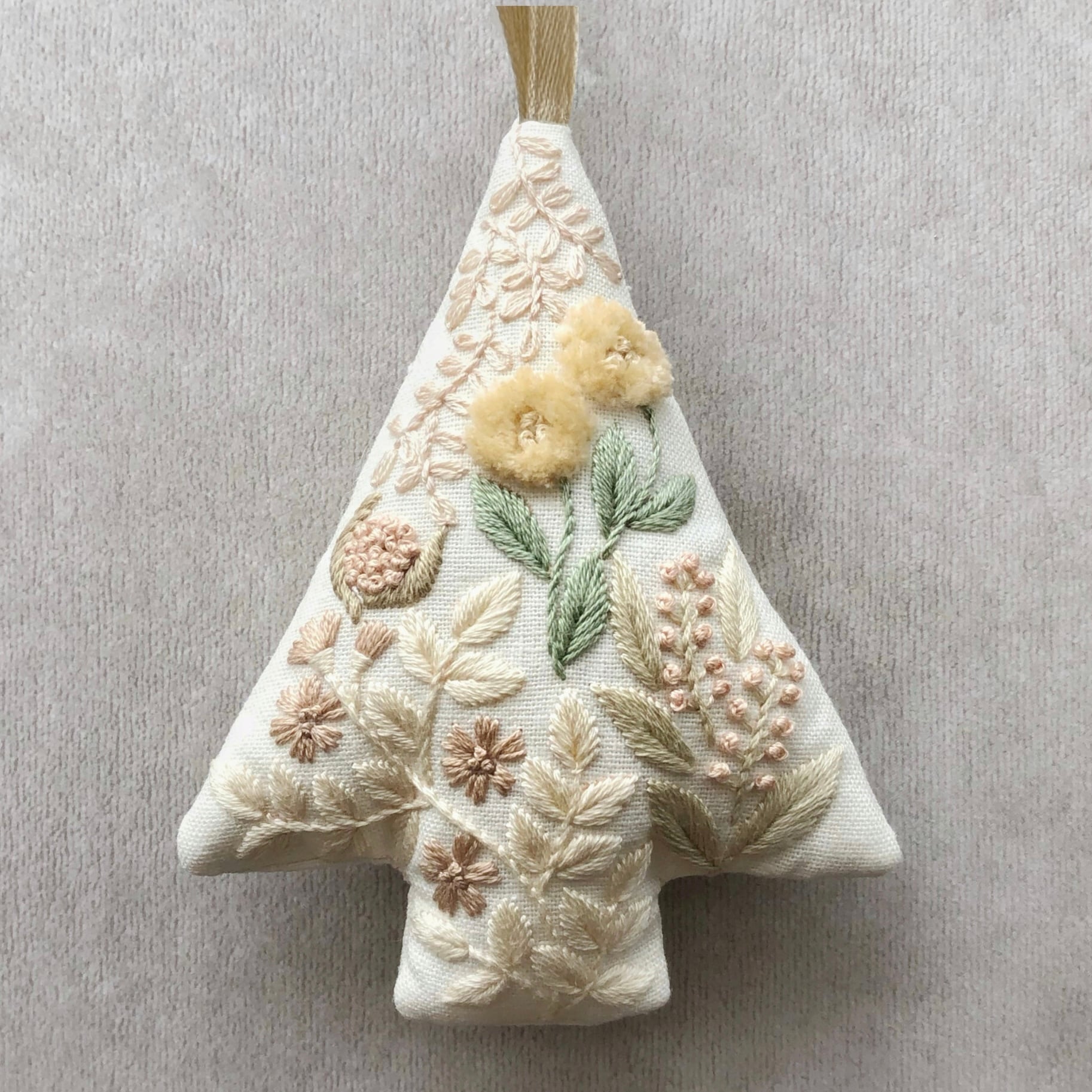 〈刺繍キット〉図案入りツリー型オーナメント・パステルカラー