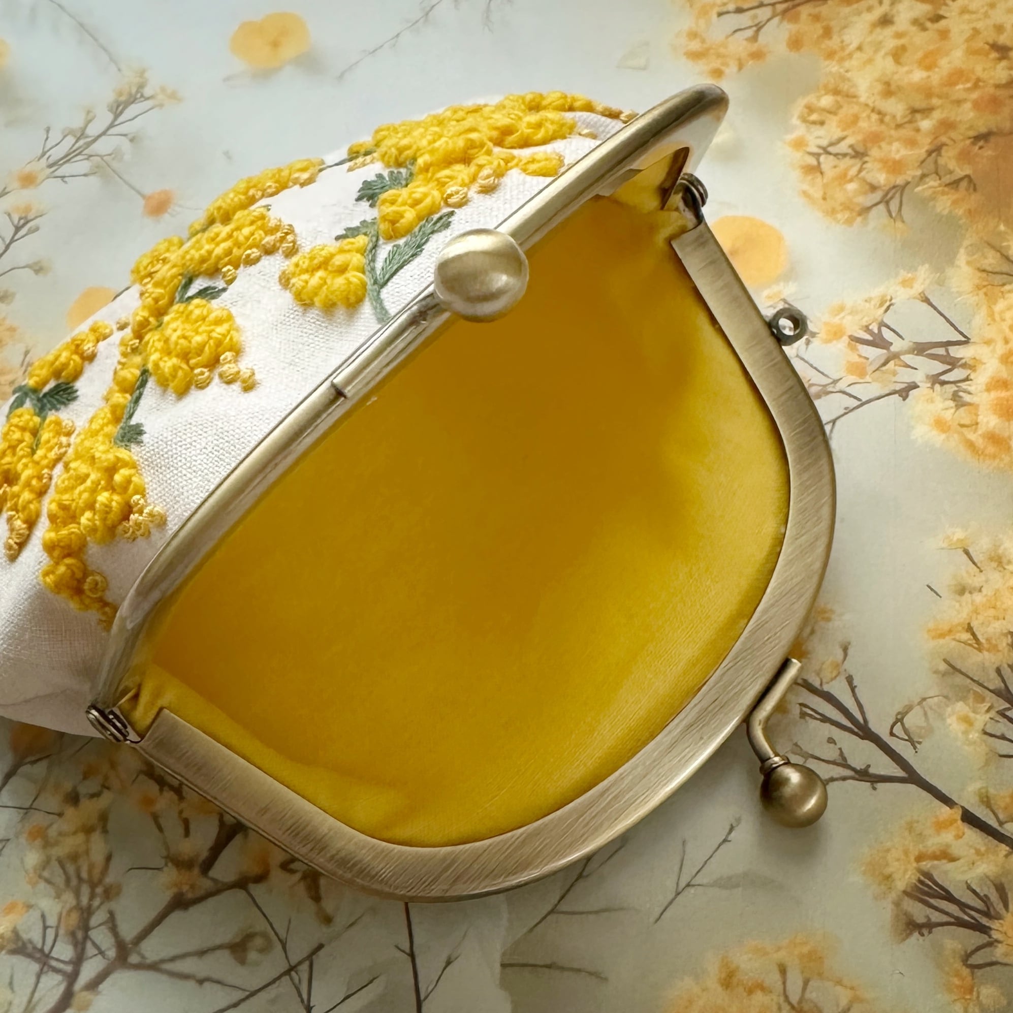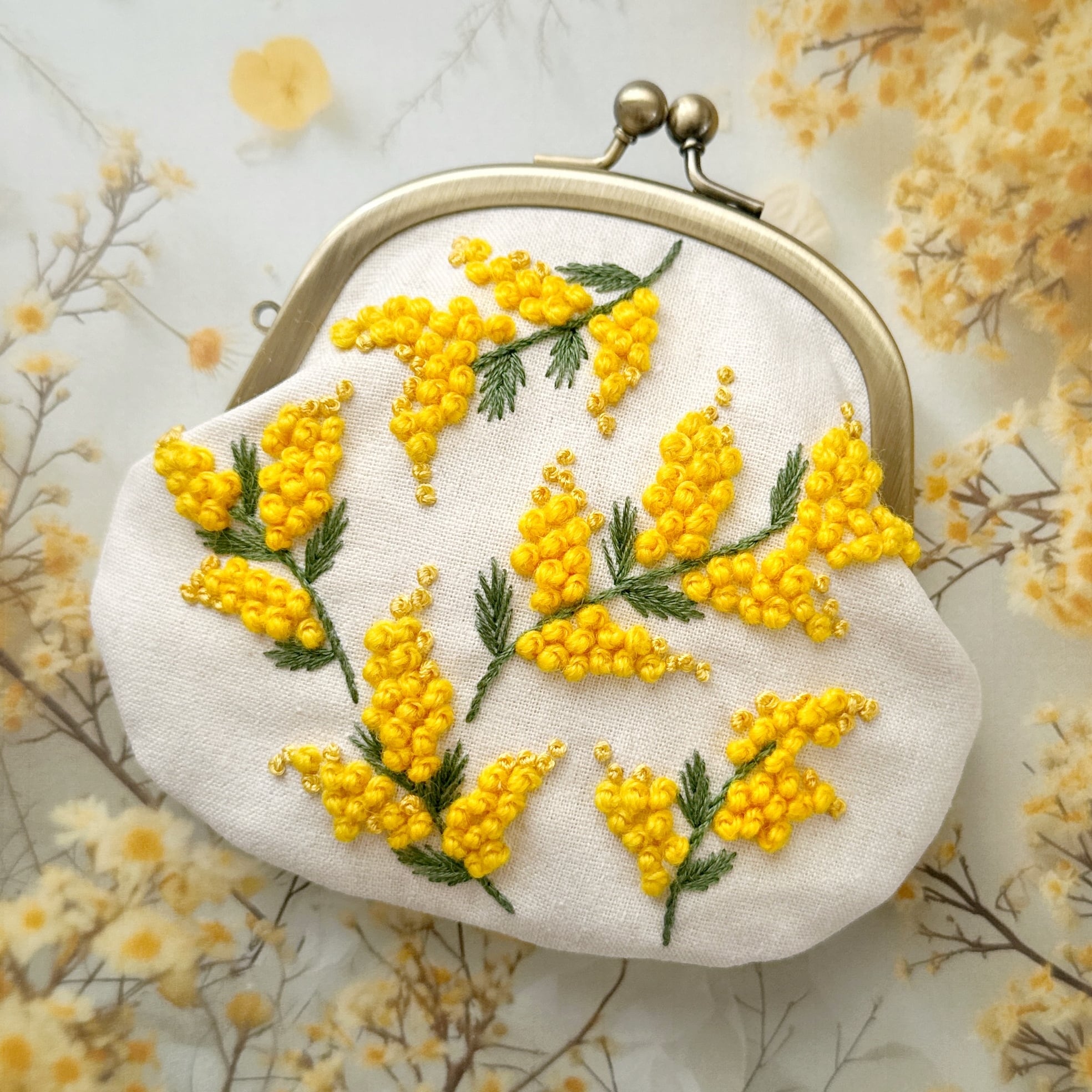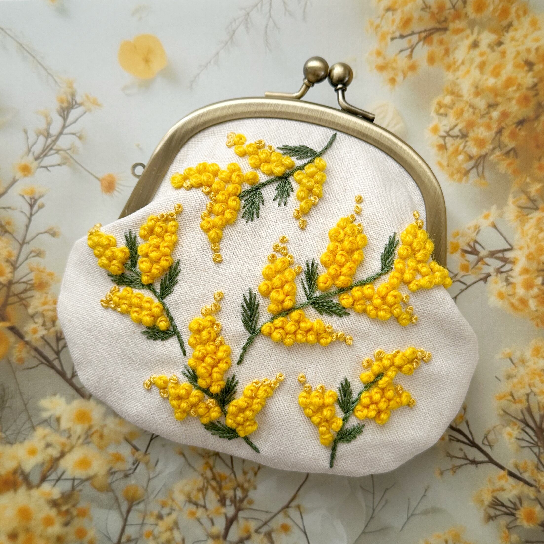 〈刺繍キット〉ミモザウールの刺繍がまぐち