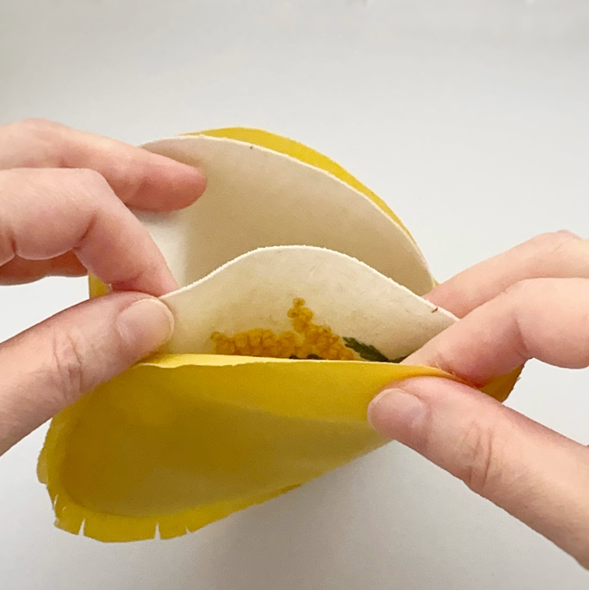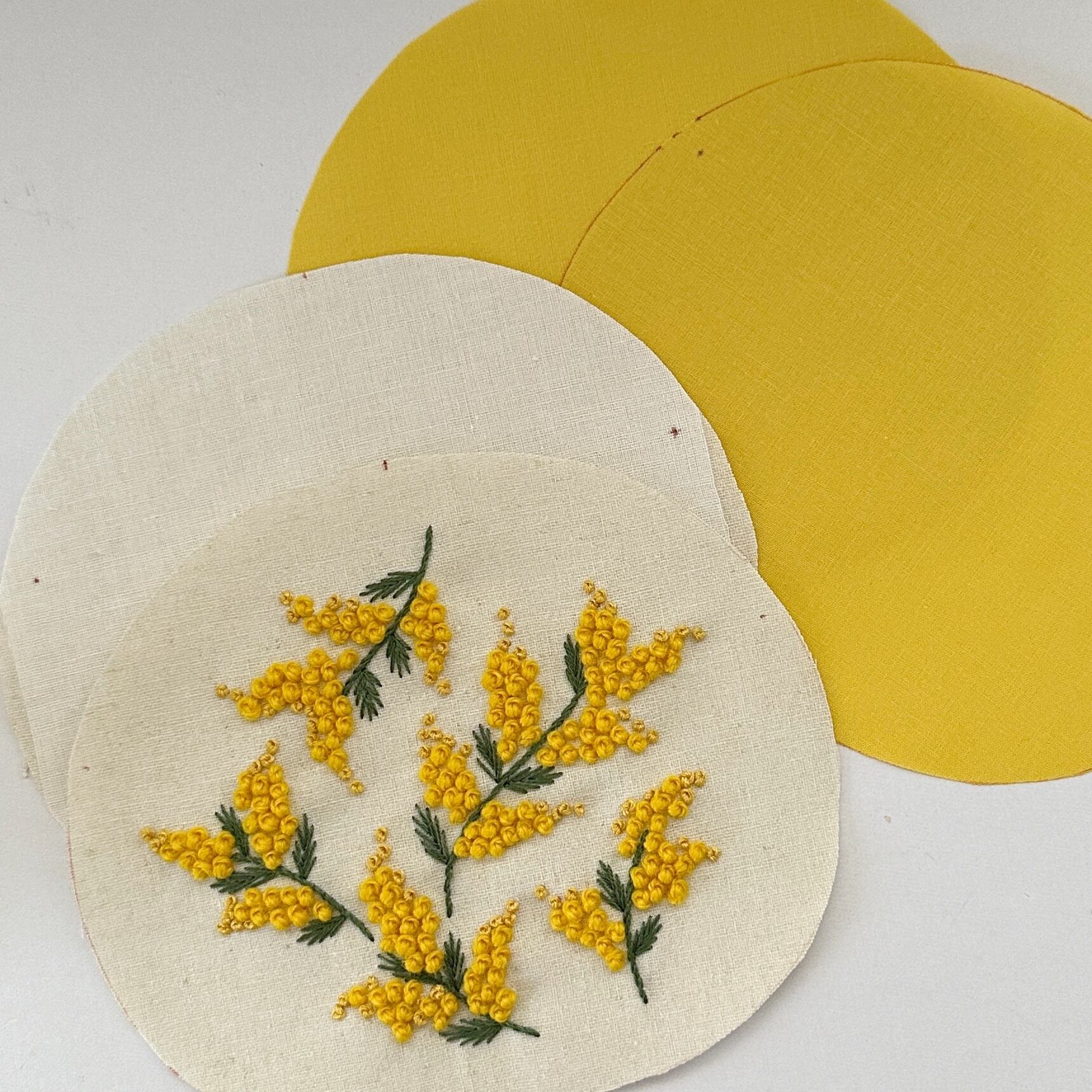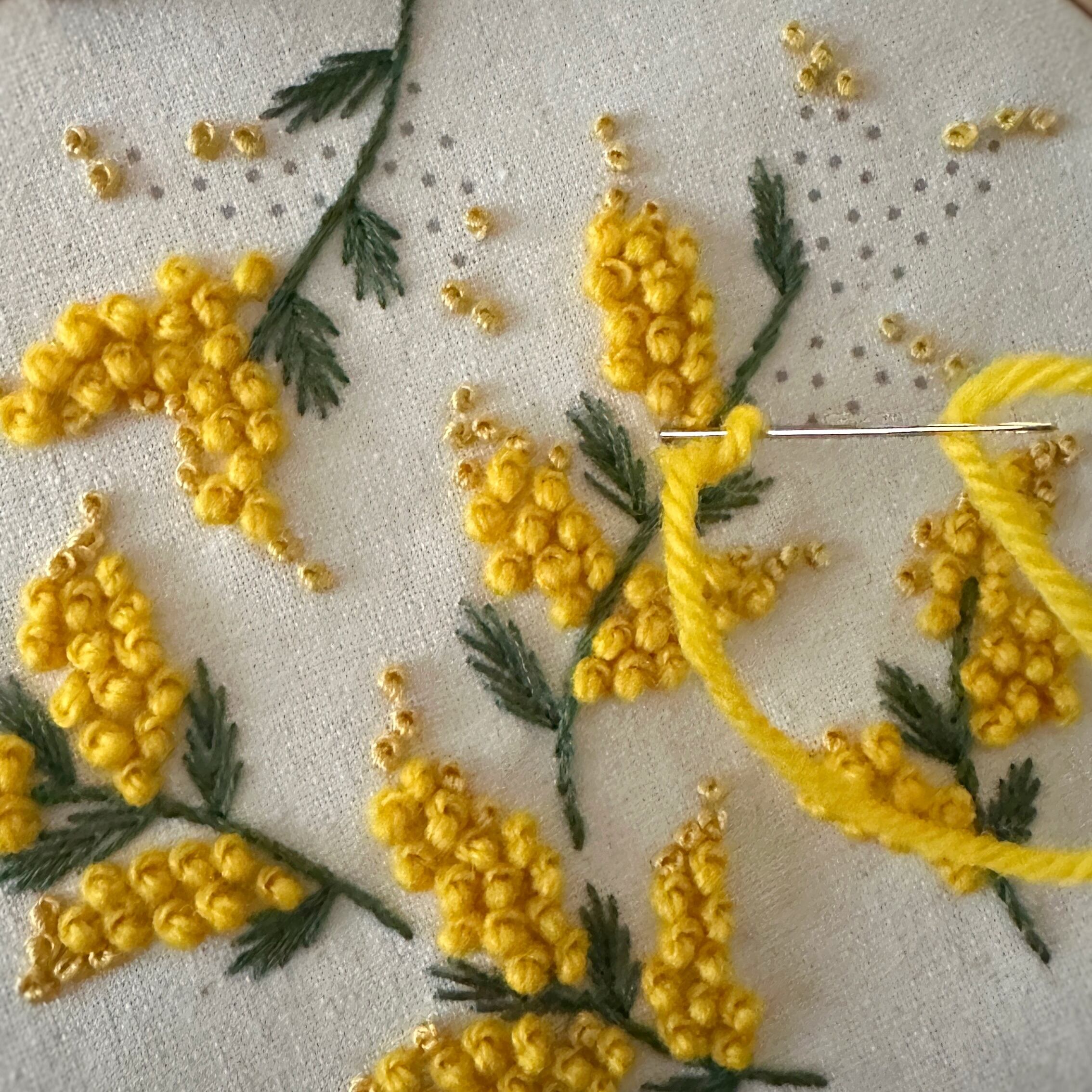 ウール糸で刺繍する、かわいいミモザのキットです!