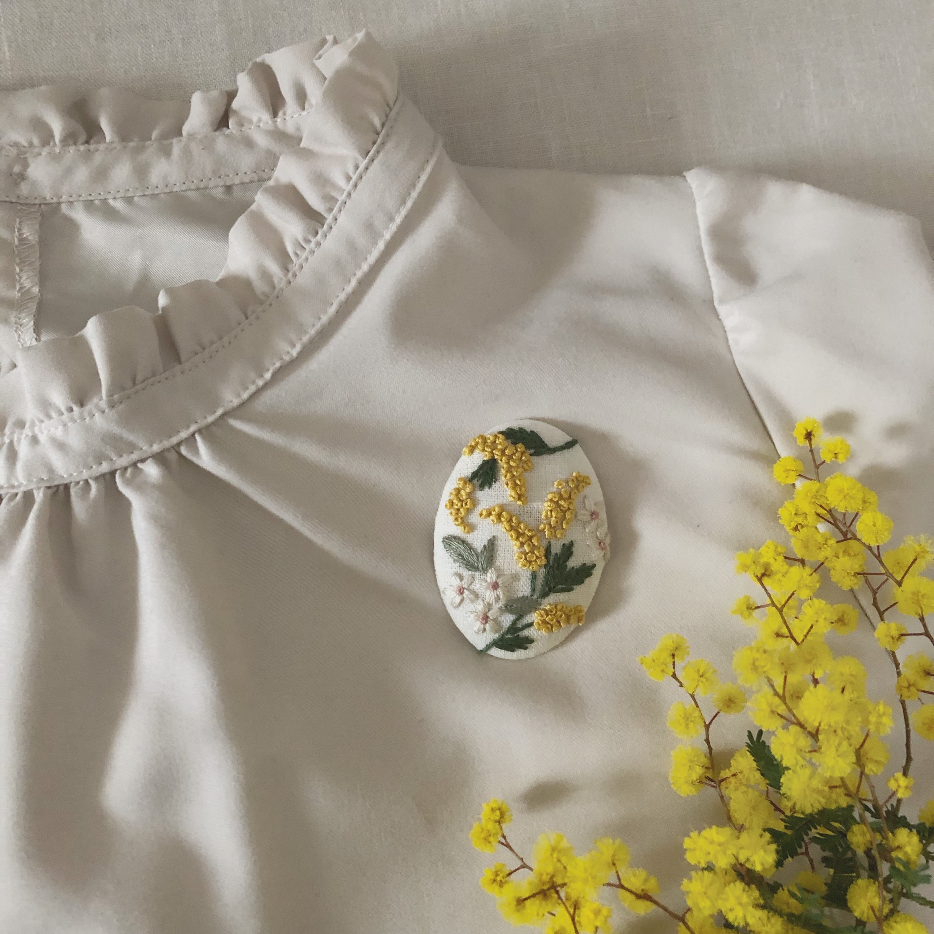 〈刺繍キット〉ミモザの刺繍ブローチ