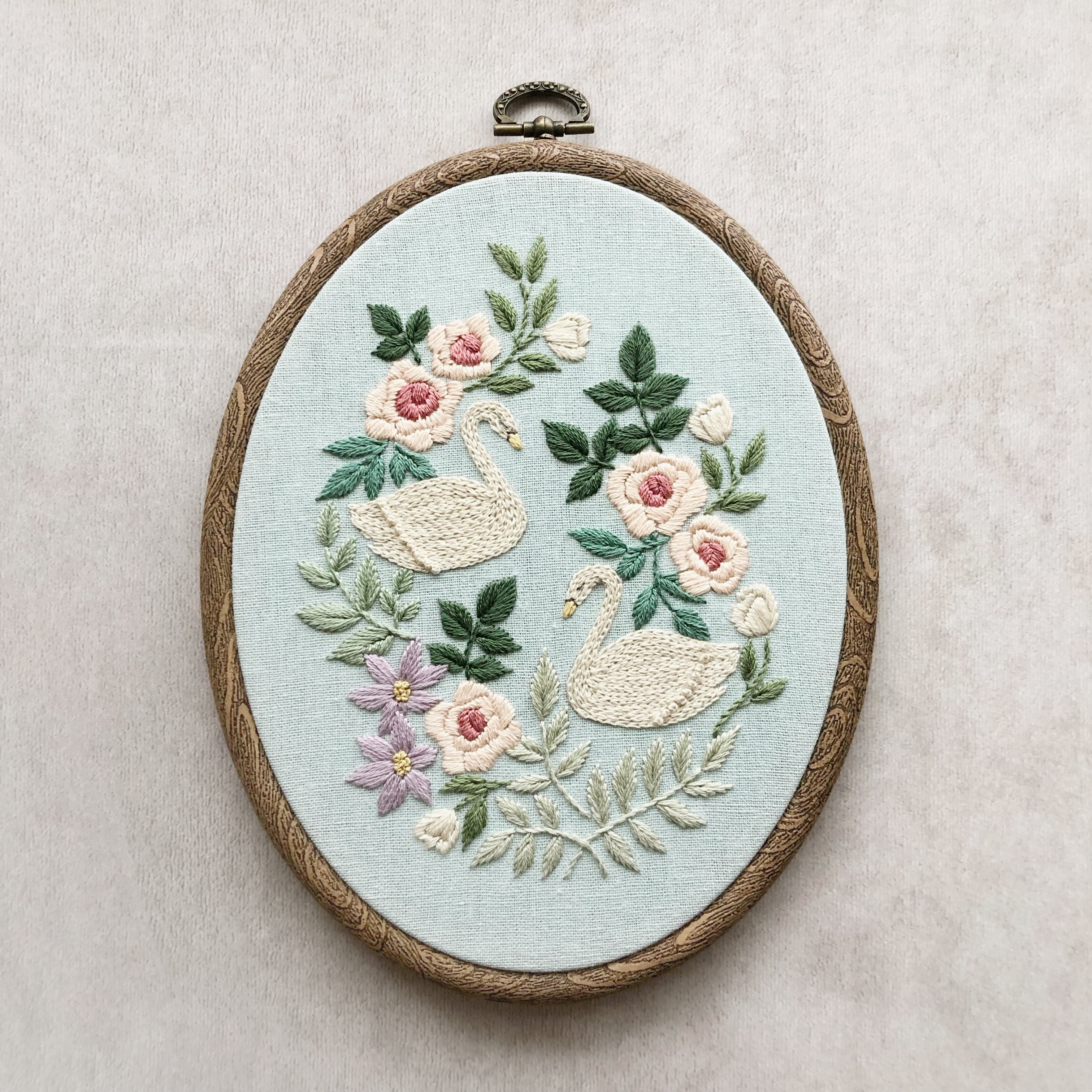 〈刺繍キット〉白鳥の刺繍フレーム・オーバル