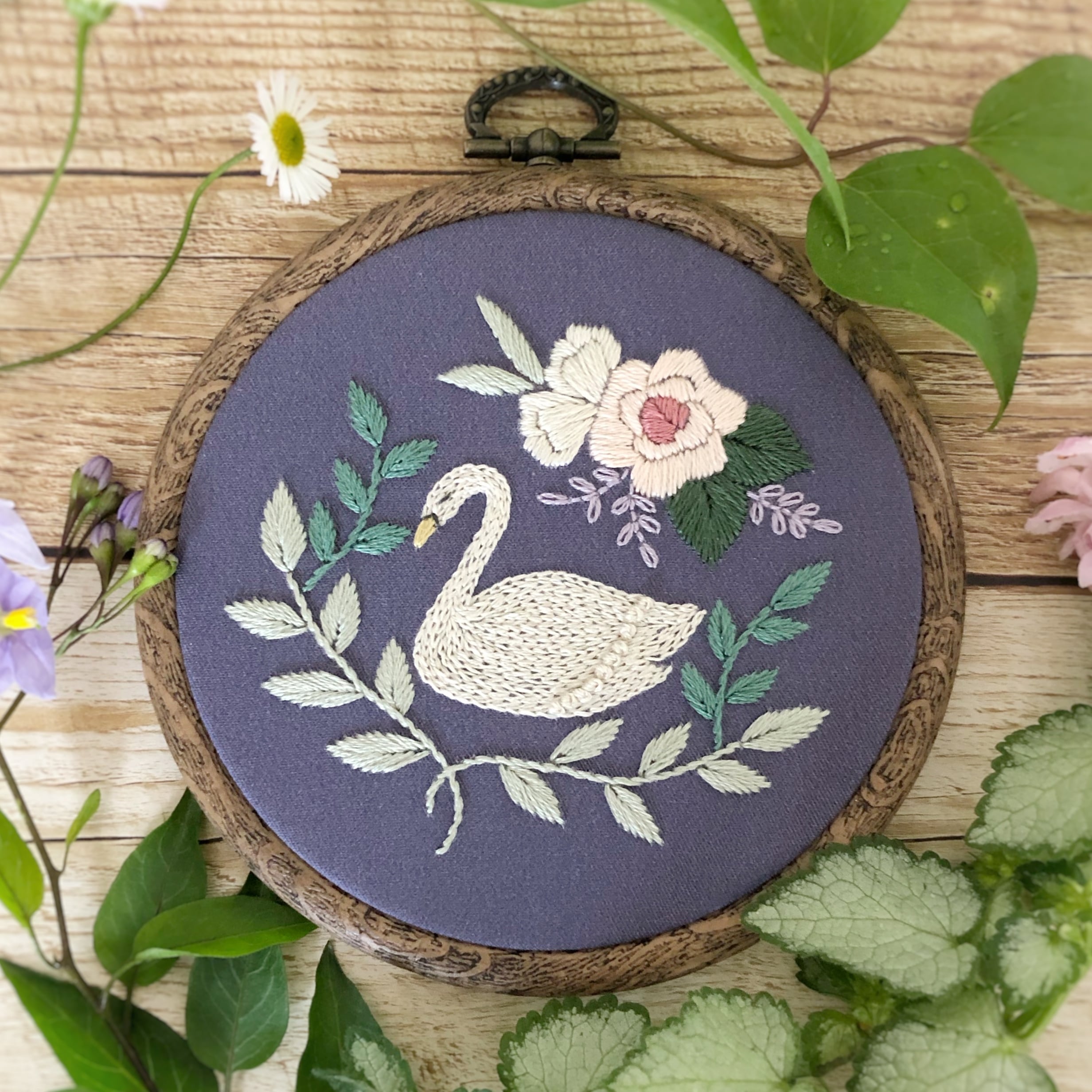 白鳥とバラの刺繍の仕方を下記サイトでご紹介していますので、ぜひお役立てください
