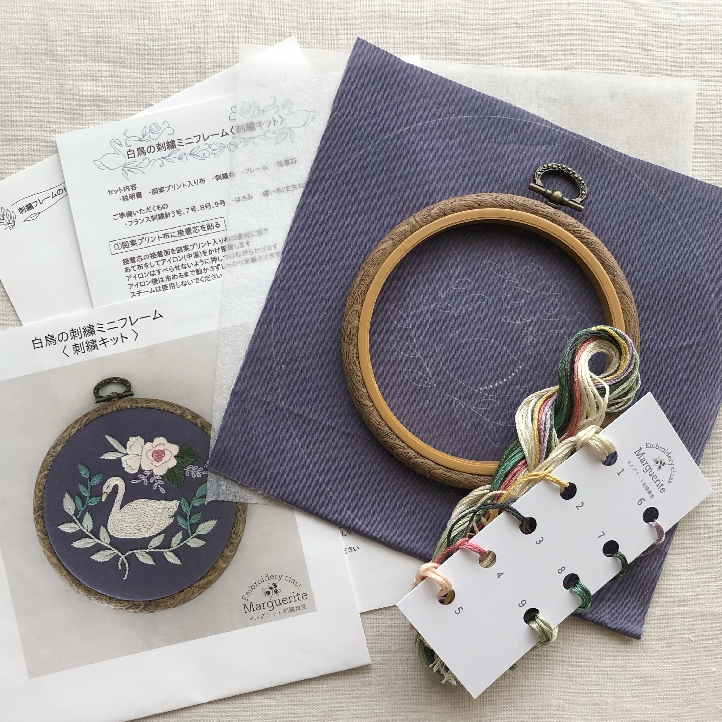 〈刺繍キット〉白鳥の刺繍ミニフレーム・ラウンド