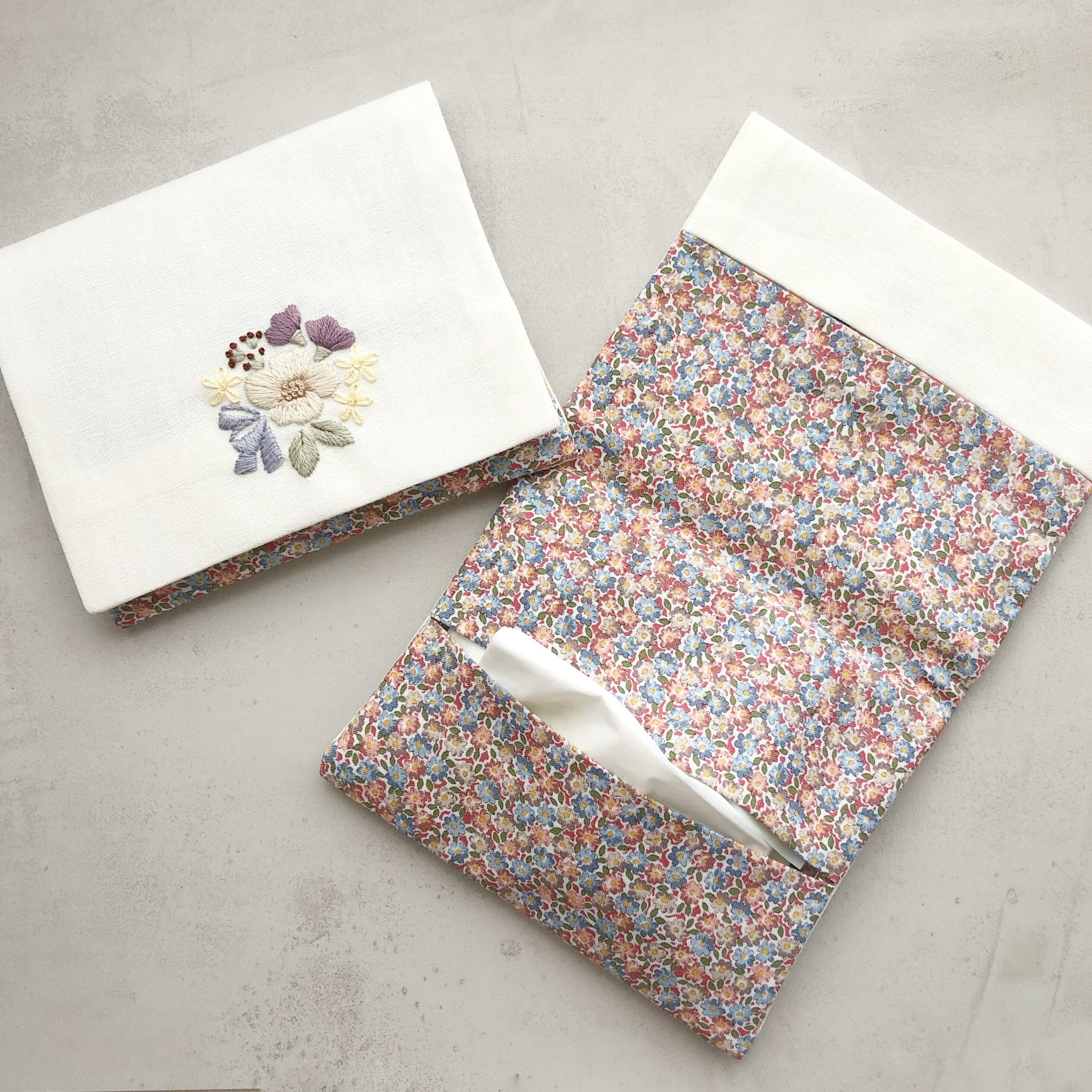 〈刺繍キット〉すみれのポケットティッシュケース◎半縫製済
