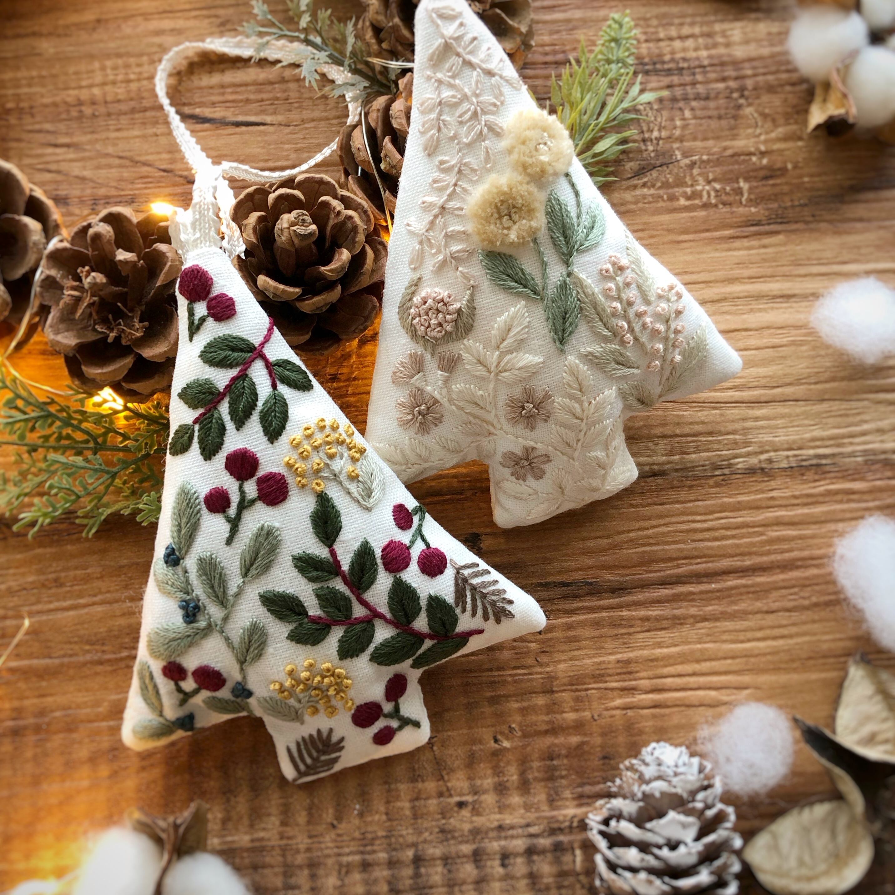 〈刺繍キット〉ツリー型オーナメント・パステルカラー