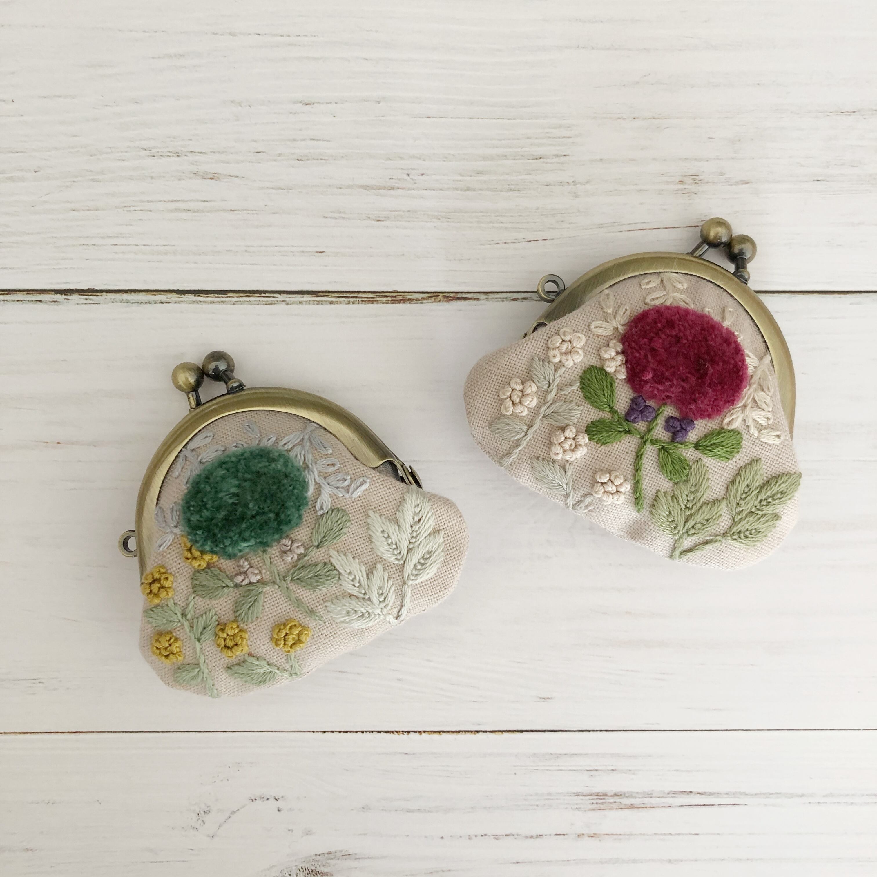 〈刺繍キット〉スミルナフラワーのミニがま口 ーGREENー