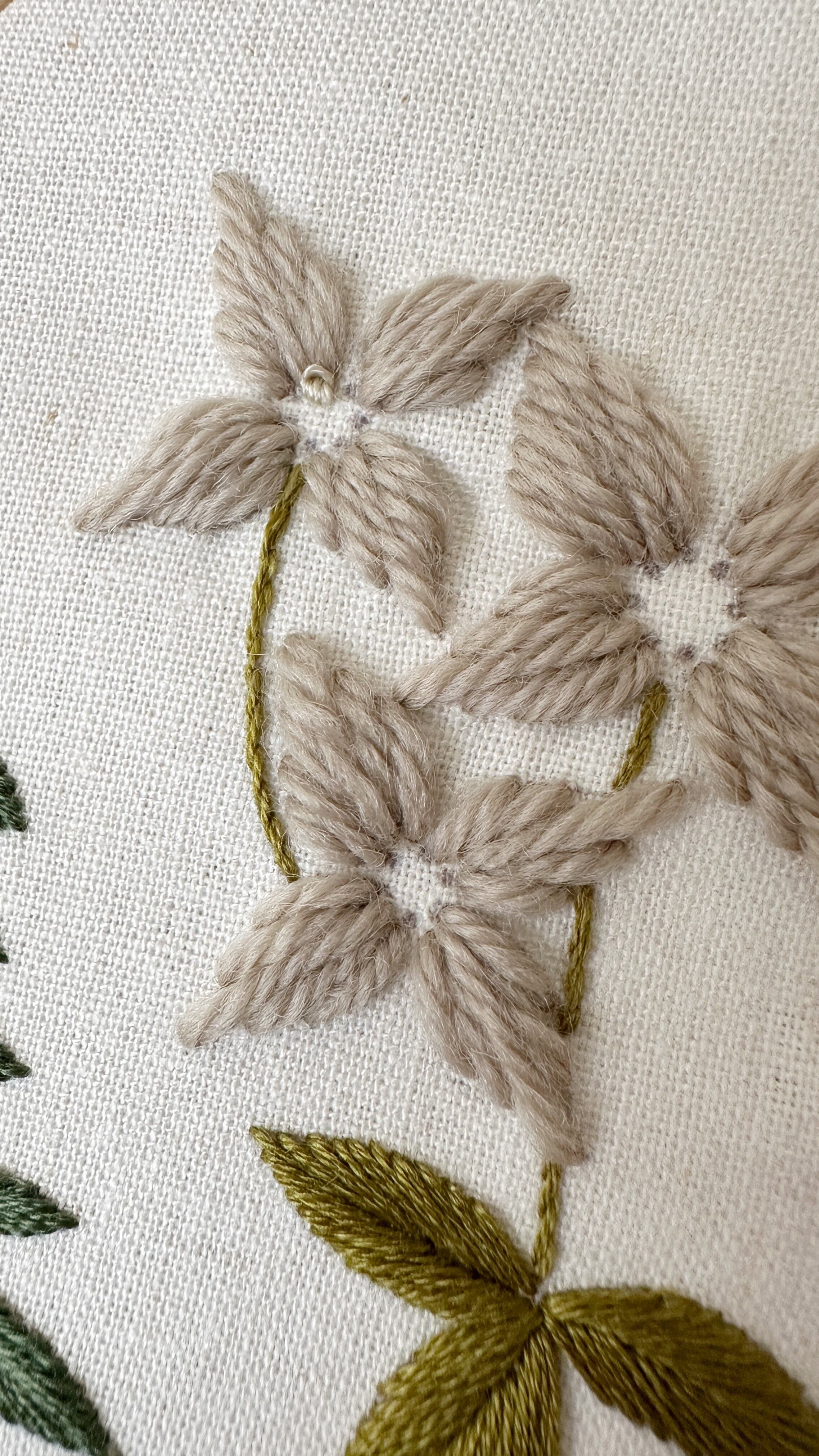 〈刺繍キット〉ナチュラルフラワーのウール刺繍がまぐち